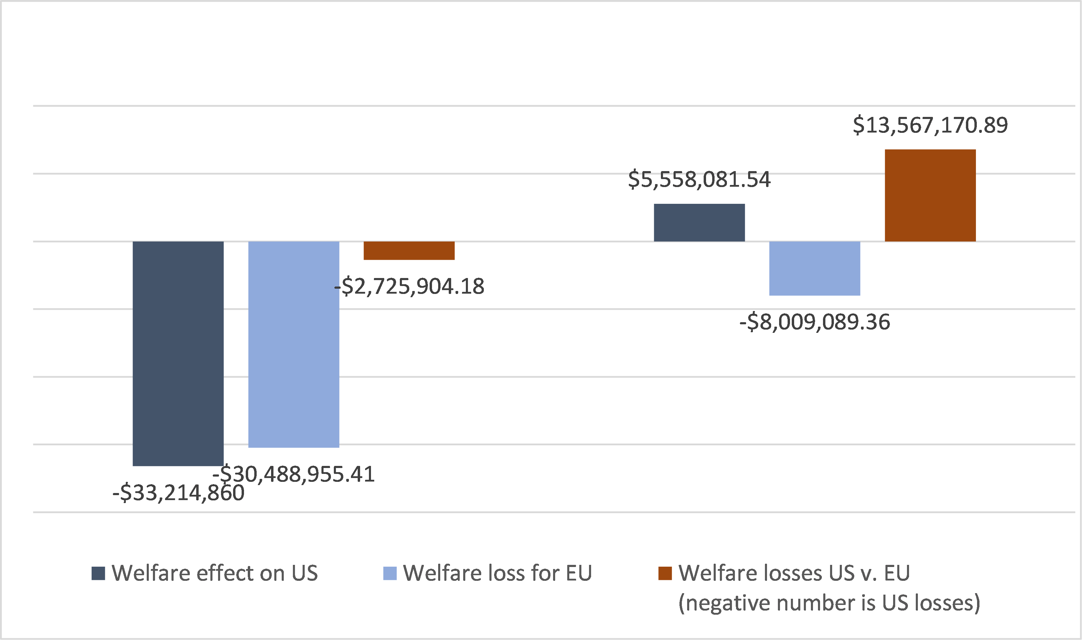 - Next, the US welfare gains of $5.6B would stand in contrast considerable welfare losses of approximately $8B to the EU economy.[6]